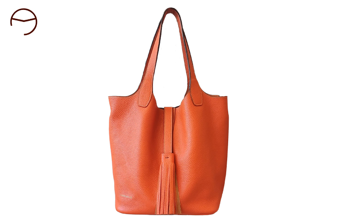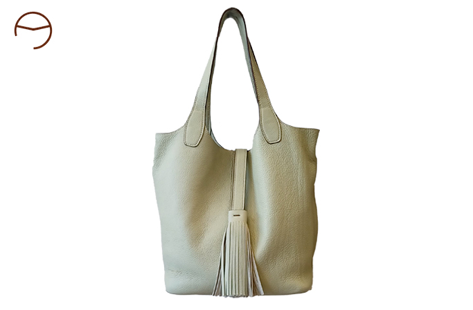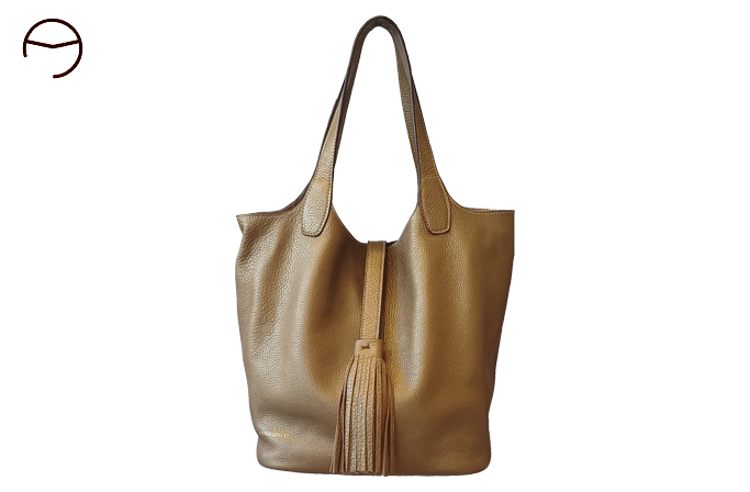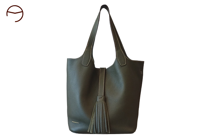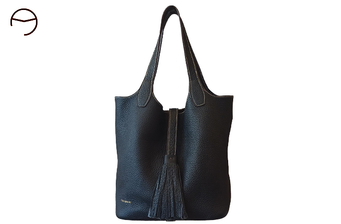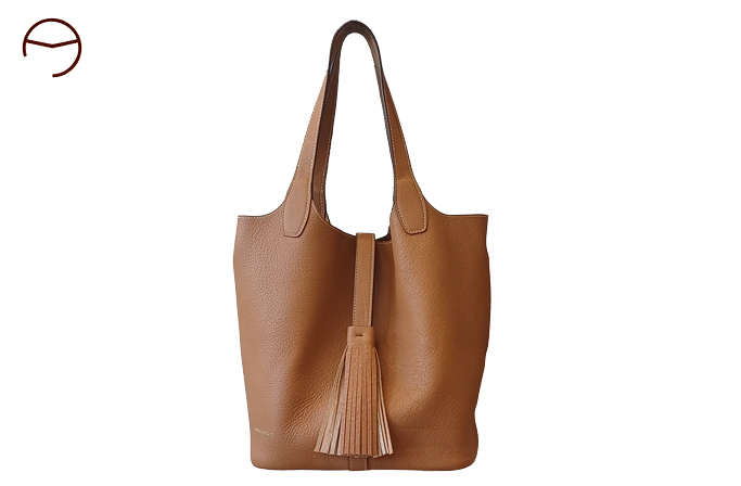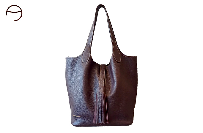El modelo ANGELES LEIVA 92 es un bolso de gran amplitud realizado en piel graneada de primera calidad. Sin forro y con los bordes cosidos, este bolso presenta una estructura flexible. La costura central le proporciona solidez al material. Gracias a su lámina central ajustable, es posible modificar el ancho de su apertura, permitiendo un acceso fácil y cómodo. La elegante borla que lo adorna en el extremo consigue que se abra y cierre con fluidez. Sus asas son muy cómodas para llevarlo al hombro o en la mano, y además, incluye una bandolera larga de piel para llevarlo cruzado. Su base rígida y con remaches dorados en las esquinas le proporciona estabilidad. Dispone de un bolsillo extraíble colgado de un asa para acceder a objetos cómodamente.