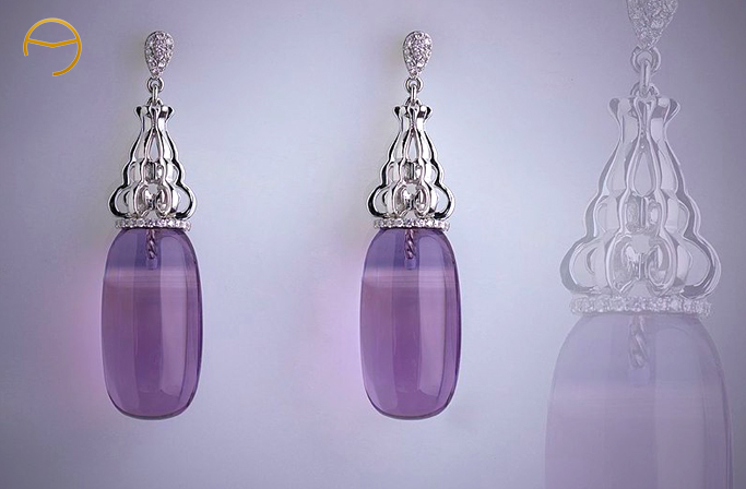 Oro blanco de 750 mls. Amatista y 66 Diamantes talla brillante de 0.23Ct.